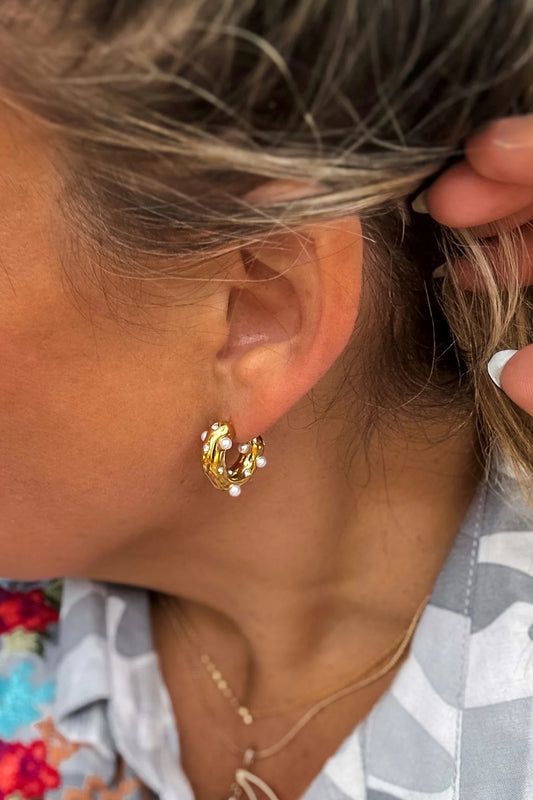 Diamond & Pearl Pave Hoops – Classic Gold