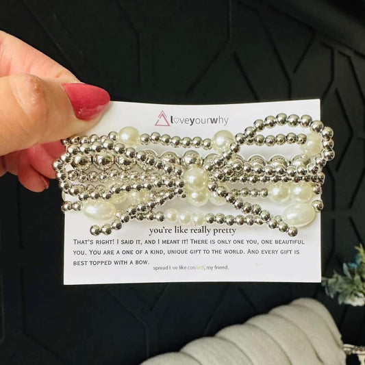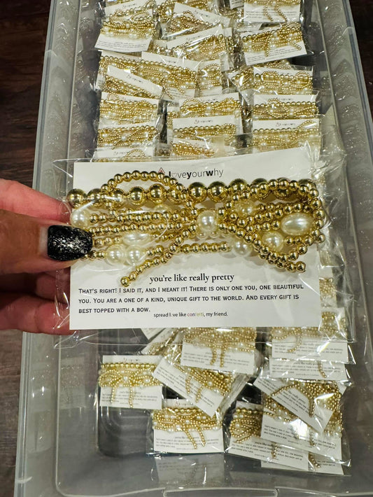 Gold Beaded Pearl and Bow Bracelet Set - Limited Stock