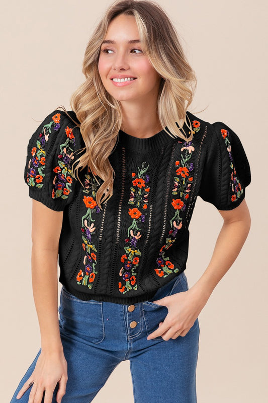 Black Floral Embroidered Sweater