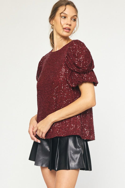 Diamonds and Pearls Puff Sleeve Top in Light Grey
