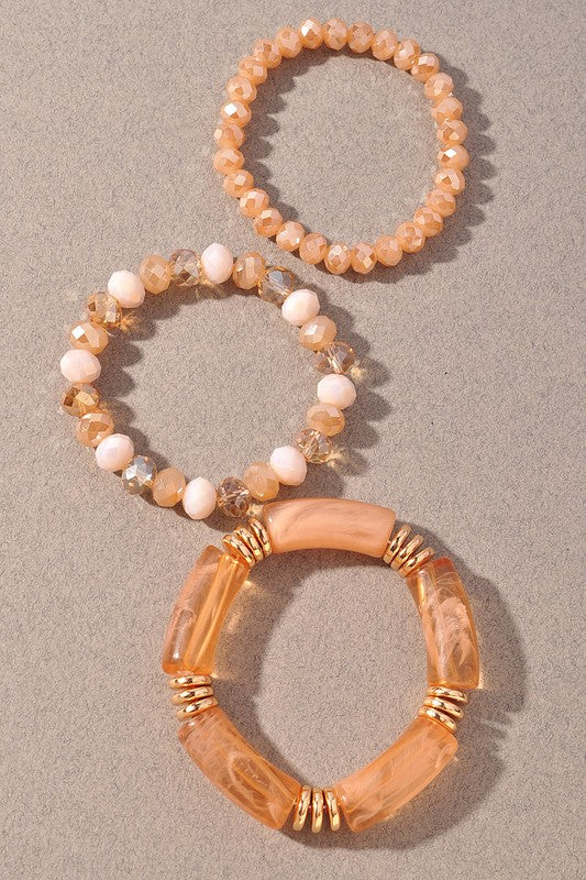 Beaded Bangle Bracelet Set - Natural